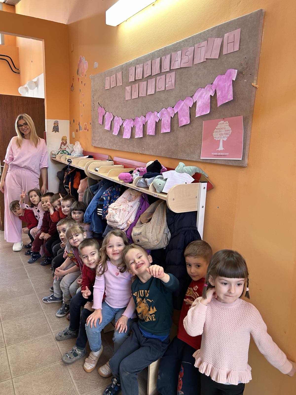 Dana 25. veljače na razini vrtića obilježili smo Dan ružičastih majica te smo time rekli veliko NE međuvršnjačkom nasilju. Roditelji su pokazali suradnju te je većina djece odjenula ružičaste majice. Kako bismo djeci približili što znači biti prijatelj, izrađivali smo plakate i provodili razne igre na temu prijateljstva.