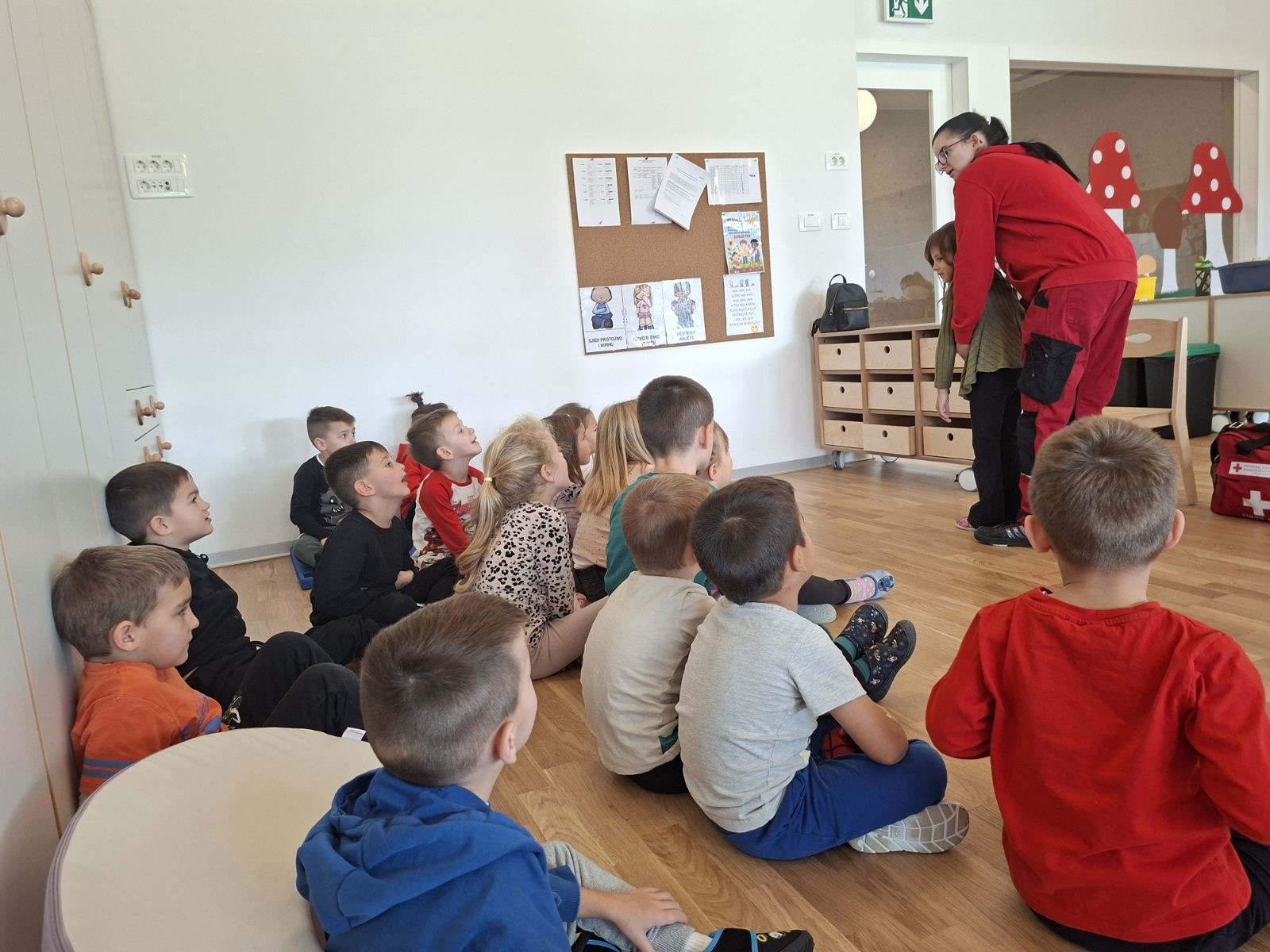 Posebno zanimljiv dio radionice bio je praktični rad u kojem su djeca imala priliku isprobati naučeno. Uz pomoć Valentine i kroz igru, djeca su vježbala stavljanje flastera na „ozlijeđene“ prijatelje te razgovarala o tome kako ostati smiren i pomoći drugome u različitim situacijama. Kroz praktične aktivnosti, pitanja i zajednički razgovor djeca su pokazala velik interes i znatiželju te naučila koliko je važno brinuti jedni o drugima i znati pomoći prijatelju kada je to potrebno. Radionica je bila poučna, zanimljiva i potaknula je djecu na razvijanje empatije, brige i međusobne podrške.