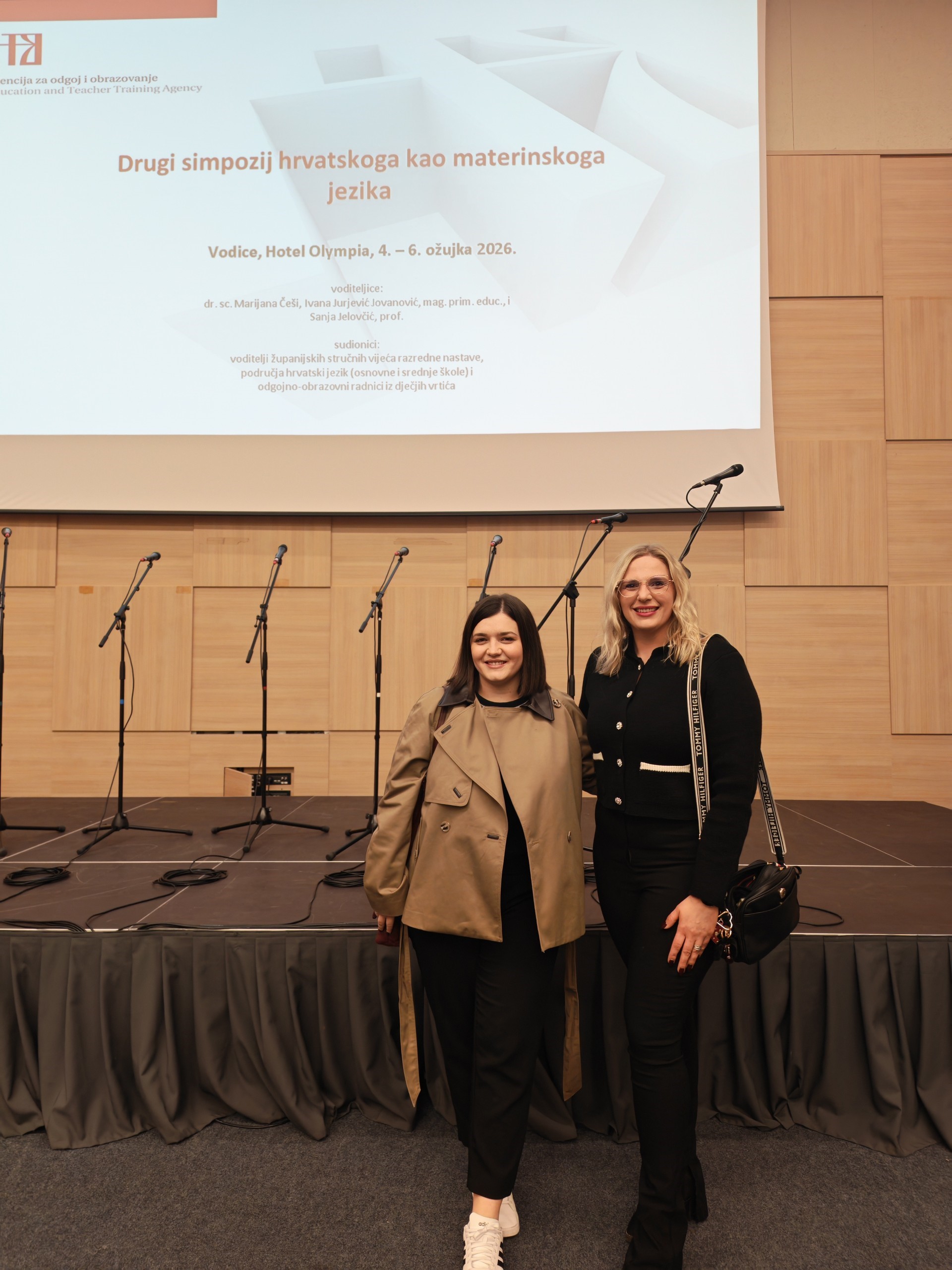 Na Drugom simpoziju hrvatskog kao materinskog jezika u Vodicama od 4.3. do 6.3. 2026. sudjelovala je odgojiteljica Ivana Rašić koja je predstavljala našu Ustanovu DV Svarožić Slavonski Brod zajedno sa pedagoginjom Marom Kajmić iz DV Potjeh. To je državni stručni skup održan za voditelje županijskih stručnih vijeća, učitelja razredne nastave, učitelje i nastavnike hrvatskoga jezika , te odgojitelje i stručne suradnike dječjih vrtića cijeloj Hrvatskoj. Za ovim stručnim usavršavanjem pokazala se potreba nakon održanog Prvog simpozija u kojem su istraživani uzroci nedostatka jezično-komunikacijskih kompetencija učenika osnovnih i srednjih škola utemeljenim rezultatima nacionalnih ispita u osnovnoj školi i državnoj maturi. Stoga je Agencija za odgoj i obrazovanje u Drugi simpozij pozvala odgojitelje i stručne suradnike dječjih vrtića koji započinju proces opismenjavanja kao prvog stupa u odgoju i obrazovanju djece na hrvatskom materinskom jeziku. Cilj održavanja Simpozija je povezivanje odgojno-obrazovnih djelatnika na svim razinama odgoja i obrazovanja sustava ( od vrtića do fakulteta). Mnogi profesori hrvatskoga jezika i doktori znanosti, učitelji razredne nastave predstavili su svoj rad ili provedena istraživanja. Tijekom tri dana slušala su se različita predavanja : Dječji leksički razvoj i mogućnost njegova poticanja od rane dobi, Riječi materinskog jezika- od upotrebe do svjesnog znanja, Aktivno i kritičko slušanje u odgojno – obrazovnom procesu, Refleksivno – iskustveni pristup poučavanju leksika u ranom i predškolskom odgoju i obrazovanju, Odgojitelji, učitelji i nastavnici kao govorni uzori itd. Odgojiteljica Ivana se vratila sa vrlo pozitivnim dojmom, te velikom željom za širenjem svijesti o važnosti hrvatskoga jezika osobito kod djece predškolskog uzrasta.